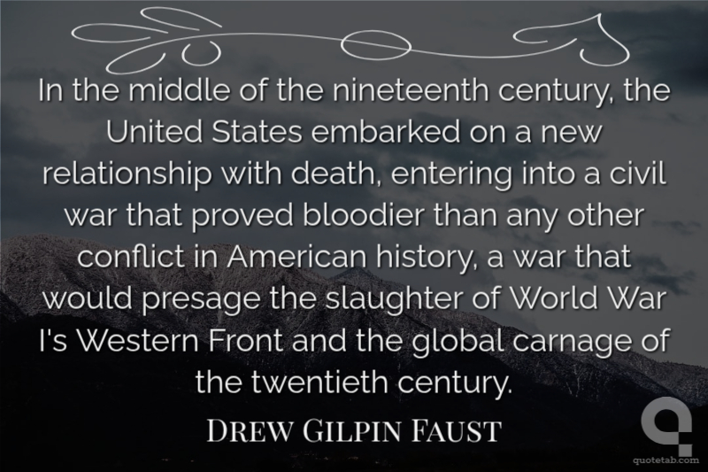 In the middle of the nineteenth century, the United States embarked on a new relationship with death, entering into a civil war that proved bloodier than any other conflict in American history, a war that would presage the slaughter of World War I's Western Front and the global carnage of the twentieth century.