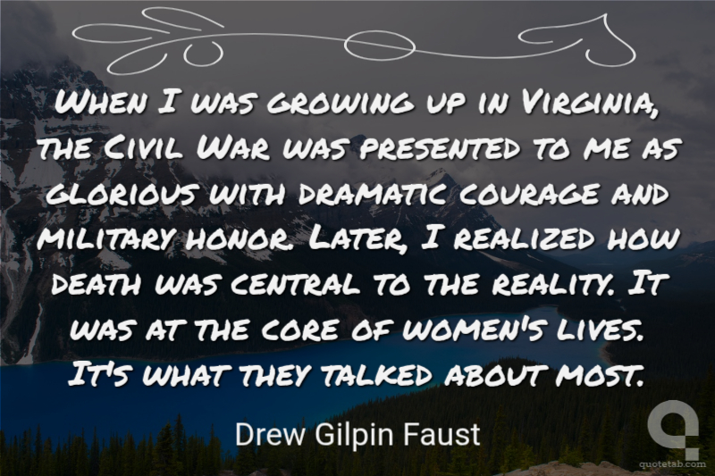 When I was growing up in Virginia, the Civil War was presented to me as glorious with dramatic courage and military honor. Later, I realized how death was central to the reality. It was at the core of women's lives. It's what they talked about most.