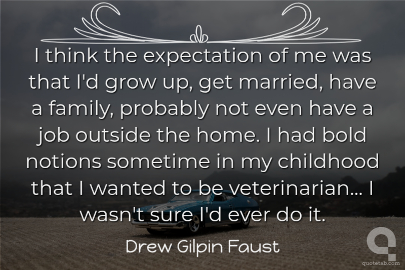 I think the expectation of me was that I'd grow up, get married, have a family, probably not even have a job outside the home. I had bold notions sometime in my childhood that I wanted to be veterinarian... I wasn't sure I'd ever do it.