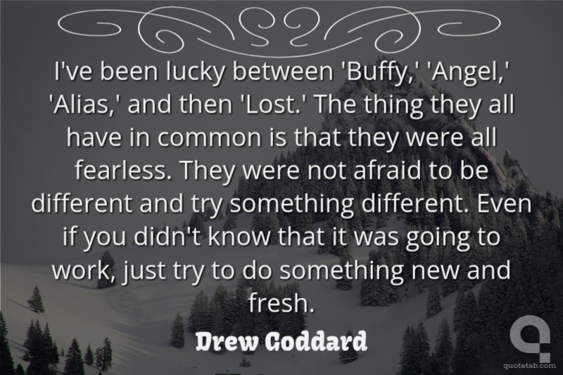 I've been lucky between 'Buffy,' 'Angel,' 'Alias,' and then 'Lost.' The thing they all have in common is that they were all fearless. They were not afraid to be different and try something different. Even if you didn't know that it was going to work, just try to do something new and fresh.