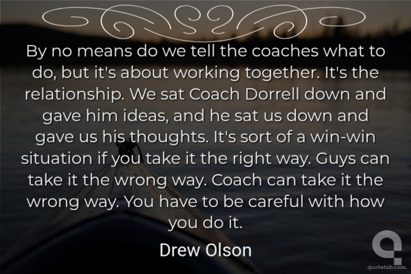 By no means do we tell the coaches what to do, but it's about working together. It's the relationship. We sat Coach Dorrell down and gave him ideas, and he sat us down and gave us his thoughts. It's sort of a win-win situation if you take it the right way. Guys can take it the wrong way. Coach can take it the wrong way. You have to be careful with how you do it.