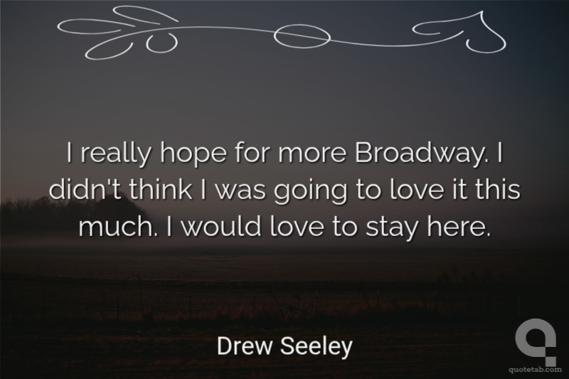 I really hope for more Broadway. I didn't think I was going to love it this much. I would love to stay here.