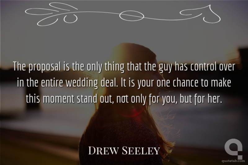 The proposal is the only thing that the guy has control over in the entire wedding deal. It is your one chance to make this moment stand out, not only for you, but for her.