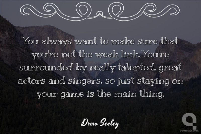 You always want to make sure that you're not the weak link. You're surrounded by really talented, great actors and singers, so just staying on your game is the main thing.