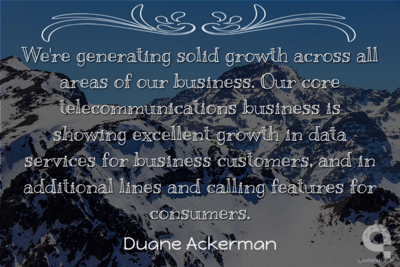 We're generating solid growth across all areas of our business. Our core telecommunications business is showing excellent growth in data services for business customers, and in additional lines and calling features for consumers.