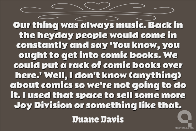Our thing was always music. Back in the heyday people would come in constantly and say 'You know, you ought to get into comic books. We could put a rack of comic books over here.' Well, I don't know (anything) about comics so we're not going to do it. I used that space to sell some more Joy Division or something like that.