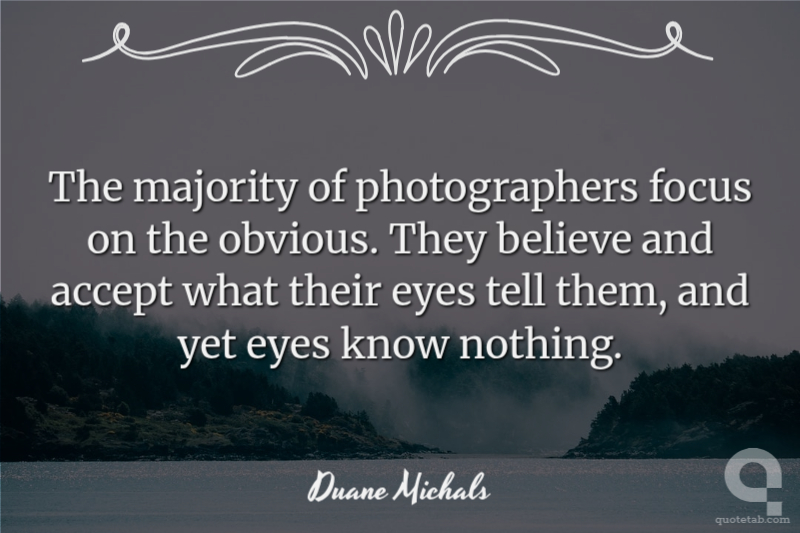 The majority of photographers focus on the obvious. They believe and accept what their eyes tell them, and yet eyes know nothing.