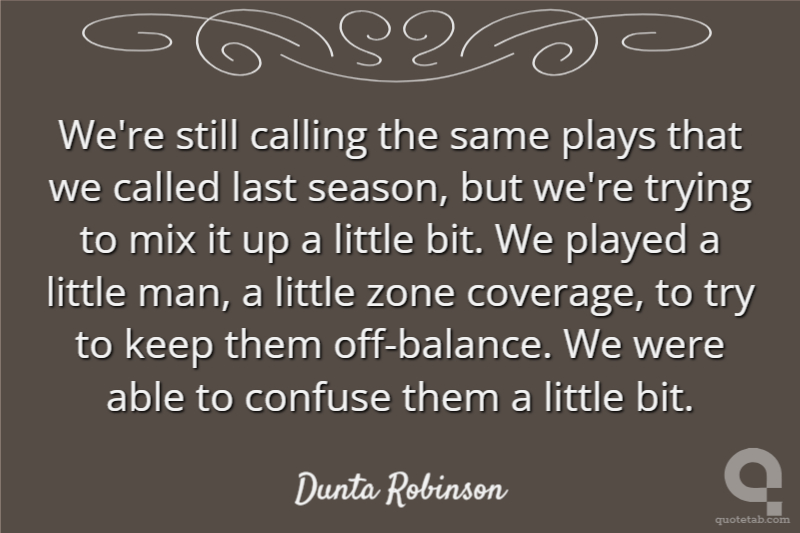 We're still calling the same plays that we called last season, but we're trying to mix it up a little bit. We played a little man, a little zone coverage, to try to keep them off-balance. We were able to confuse them a little bit.