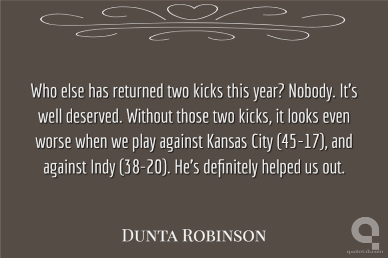 Who else has returned two kicks this year? Nobody. It's well deserved. Without those two kicks, it looks even worse when we play against Kansas City (45-17), and against Indy (38-20). He's definitely helped us out.
