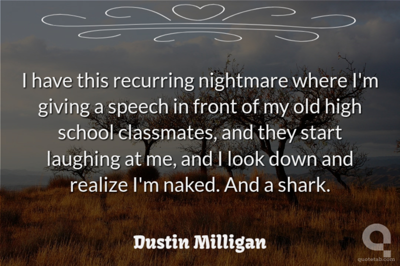 I have this recurring nightmare where I'm giving a speech in front of my old high school classmates, and they start laughing at me, and I look down and realize I'm naked. And a shark.
