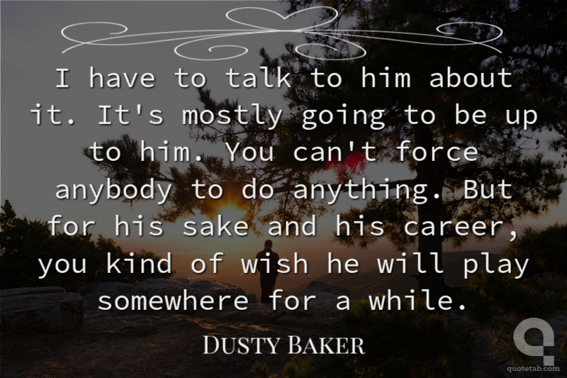 I have to talk to him about it. It's mostly going to be up to him. You can't force anybody to do anything. But for his sake and his career, you kind of wish he will play somewhere for a while.