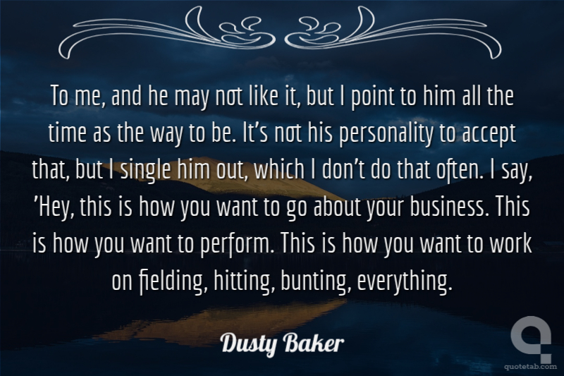 To me, and he may not like it, but I point to him all the time as the way to be. It's not his personality to accept that, but I single him out, which I don't do that often. I say, 'Hey, this is how you want to go about your business. This is how you want to perform. This is how you want to work on fielding, hitting, bunting, everything.
