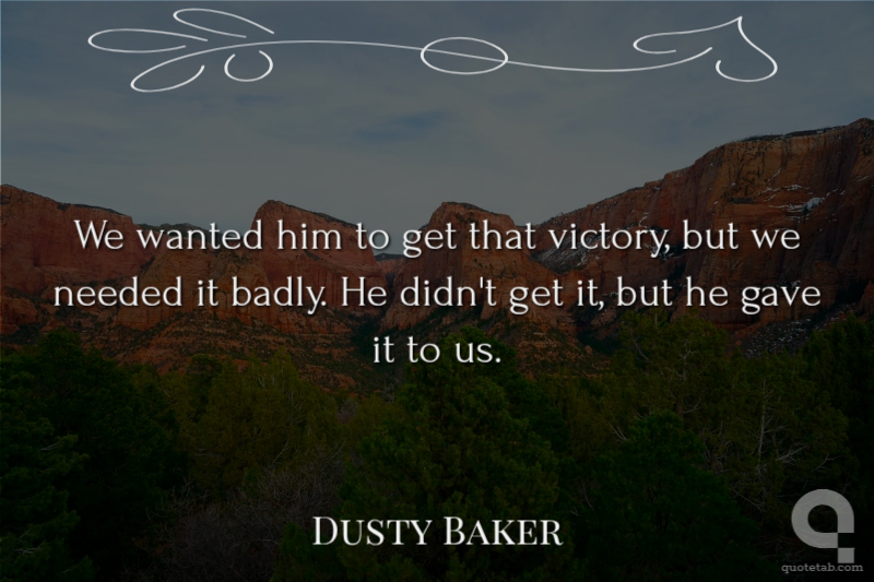 We wanted him to get that victory, but we needed it badly. He didn't get it, but he gave it to us.