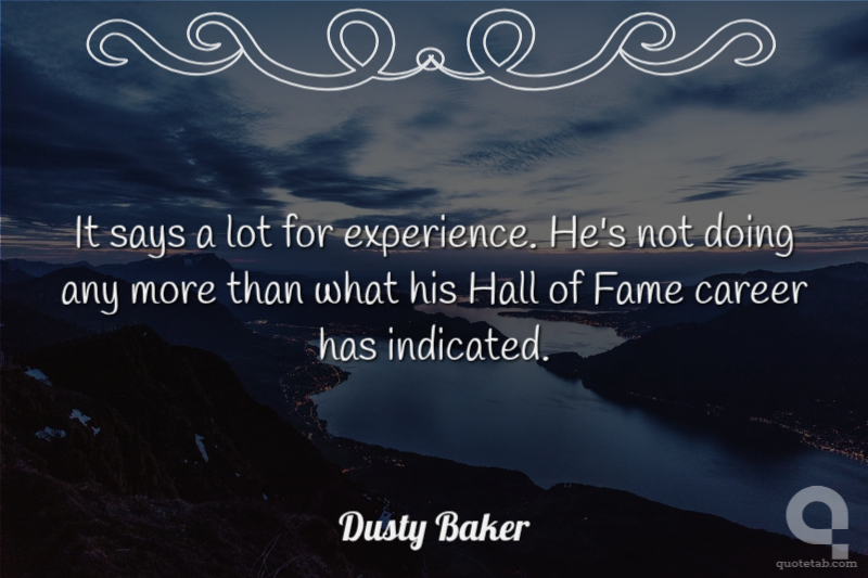 It says a lot for experience. He's not doing any more than what his Hall of Fame career has indicated.