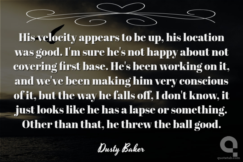 His velocity appears to be up, his location was good. I'm sure he's not happy about not covering first base. He's been working on it, and we've been making him very conscious of it, but the way he falls off, I don't know, it just looks like he has a lapse or something. Other than that, he threw the ball good.