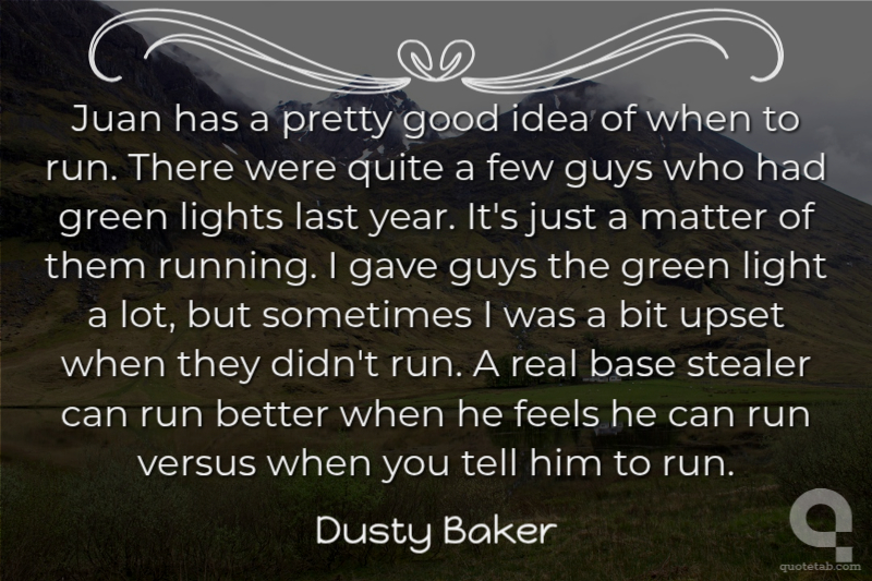 Juan has a pretty good idea of when to run. There were quite a few guys who had green lights last year. It's just a matter of them running. I gave guys the green light a lot, but sometimes I was a bit upset when they didn't run. A real base stealer can run better when he feels he can run versus when you tell him to run.