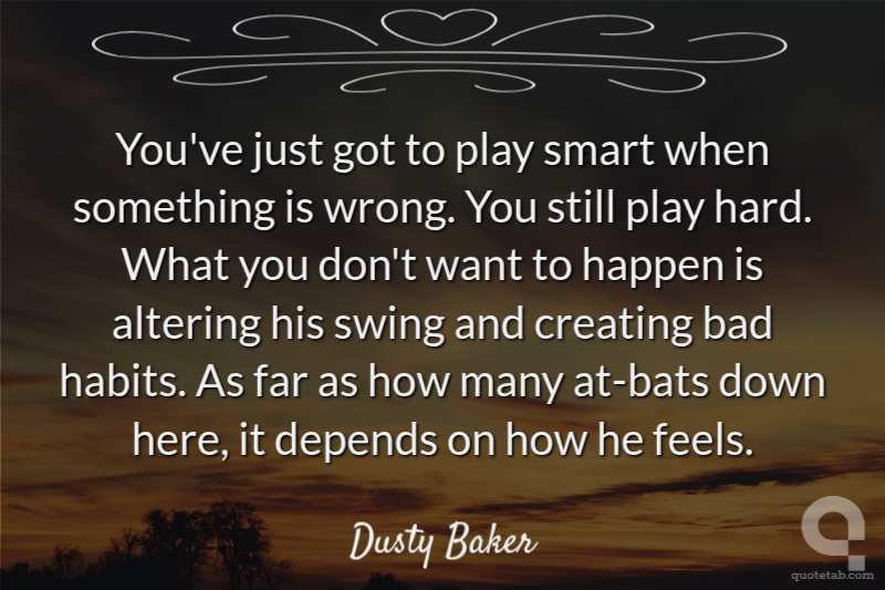 You've just got to play smart when something is wrong. You still play hard. What you don't want to happen is altering his swing and creating bad habits. As far as how many at-bats down here, it depends on how he feels.