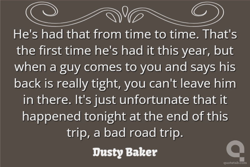 He's had that from time to time. That's the first time he's had it this year, but when a guy comes to you and says his back is really tight, you can't leave him in there. It's just unfortunate that it happened tonight at the end of this trip, a bad road trip.