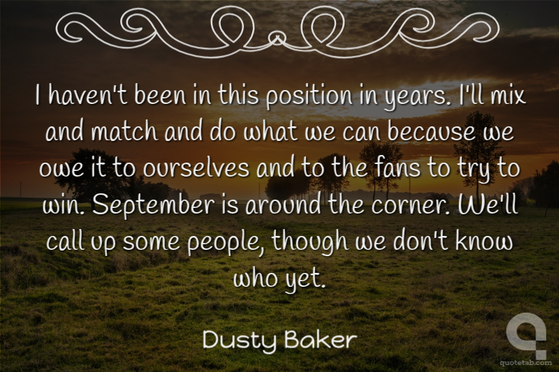 I haven't been in this position in years. I'll mix and match and do what we can because we owe it to ourselves and to the fans to try to win. September is around the corner. We'll call up some people, though we don't know who yet.