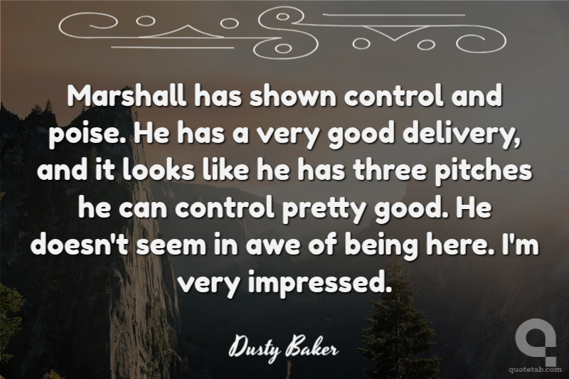 Marshall has shown control and poise. He has a very good delivery, and it looks like he has three pitches he can control pretty good. He doesn't seem in awe of being here. I'm very impressed.