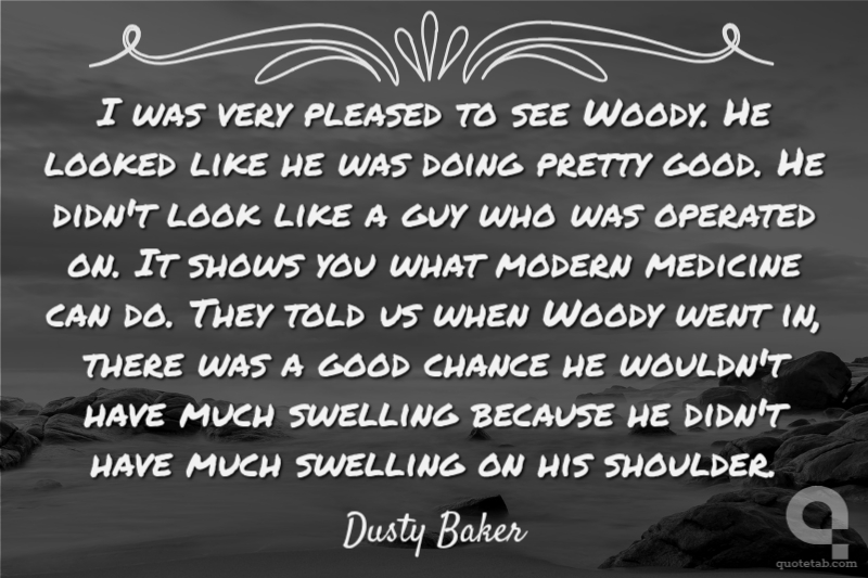 I was very pleased to see Woody. He looked like he was doing pretty good. He didn't look like a guy who was operated on. It shows you what modern medicine can do. They told us when Woody went in, there was a good chance he wouldn't have much swelling because he didn't have much swelling on his shoulder.