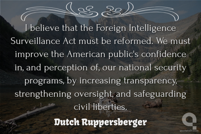 I believe that the Foreign Intelligence Surveillance Act must be reformed. We must improve the American public's confidence in, and perception of, our national security programs, by increasing transparency, strengthening oversight, and safeguarding civil liberties.
