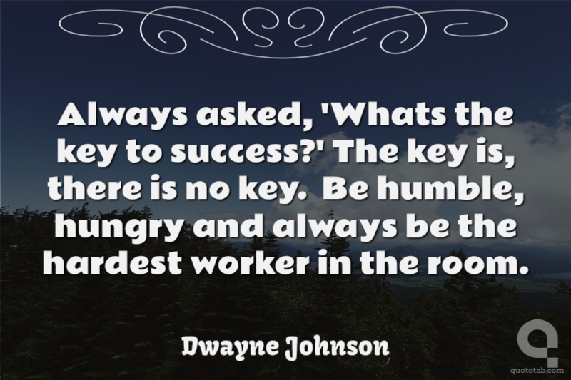 Always asked, 'Whats the key to success?' The key is, there is no key. Be humble, hungry and always be the hardest worker in the room.