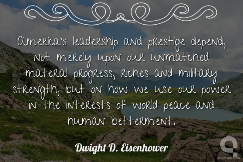 America's leadership and prestige depend, not merely upon our unmatched material progress, riches and military strength, but on how we use our power in the interests of world peace and human betterment.