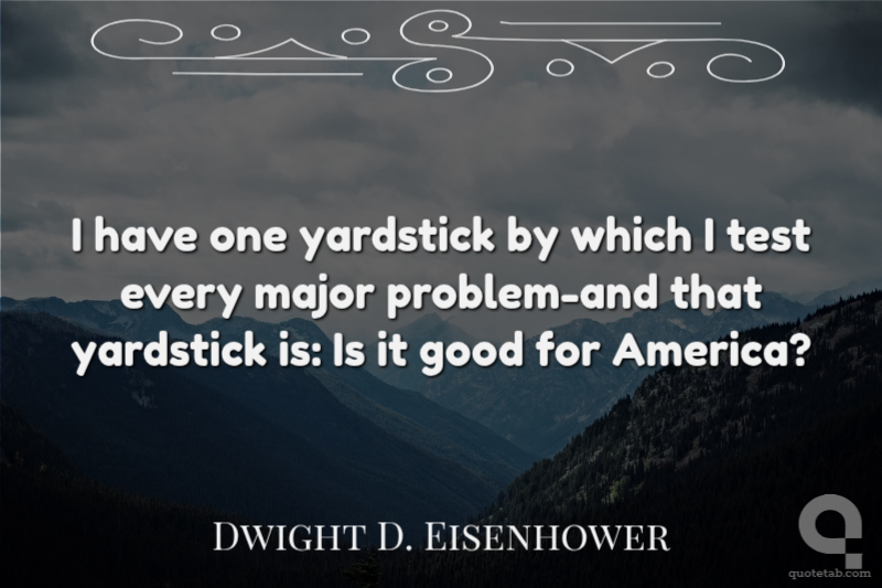 I have only one yardstick by which I test every major problem -- and that yardstick is: Is it good for America?