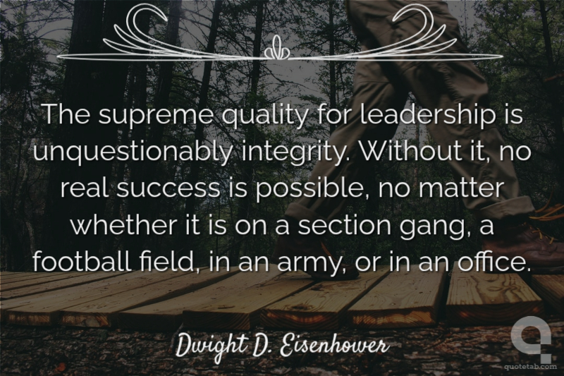 The supreme quality for leadership is unquestionably integrity. Without it, no real success is possible, no matter whether it is on a section gang, a football field, in an army, or in an office.