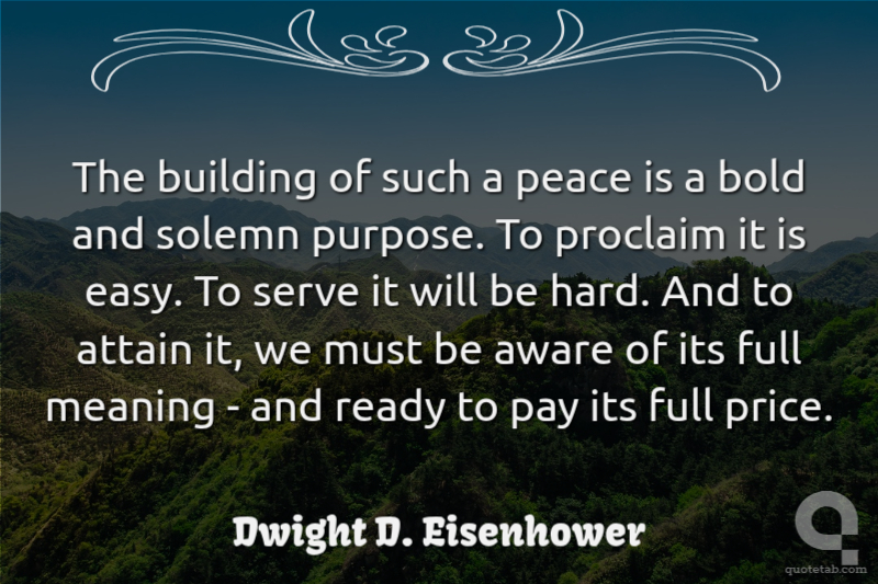 The building of such a peace is a bold and solemn purpose. To proclaim it is easy. To serve it will be hard. And to attain it, we must be aware of its full meaning - and ready to pay its full price.