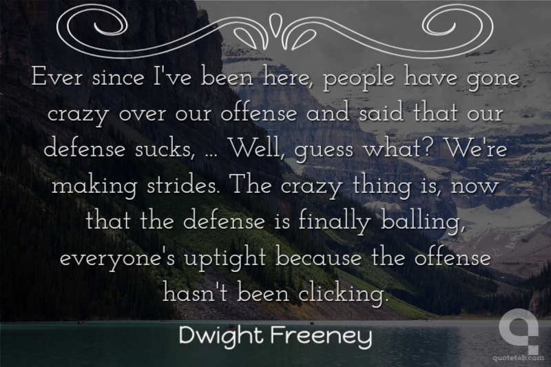 Ever since I've been here, people have gone crazy over our offense and said that our defense sucks, ... Well, guess what? We're making strides. The crazy thing is, now that the defense is finally balling, everyone's uptight because the offense hasn't been clicking.