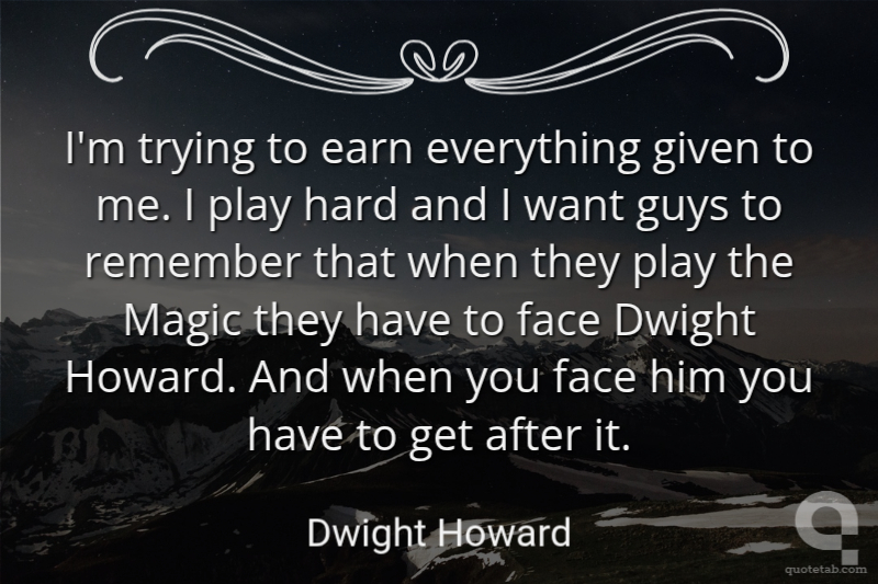 I'm trying to earn everything given to me. I play hard and I want guys to remember that when they play the Magic they have to face Dwight Howard. And when you face him you have to get after it.