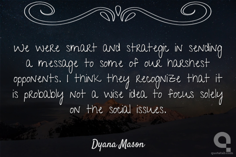 We were smart and strategic in sending a message to some of our harshest opponents. I think they recognize that it is probably not a wise idea to focus solely on the social issues.