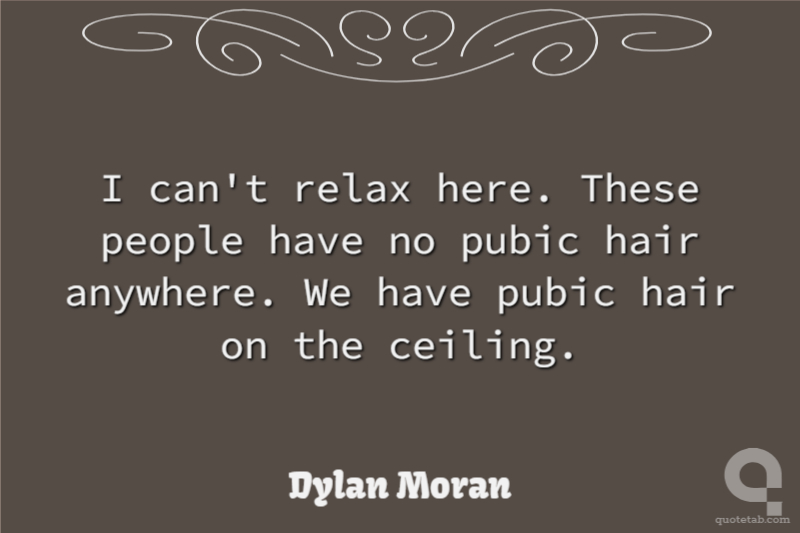 I can't relax here. These people have no pubic hair anywhere. We have pubic hair on the ceiling.