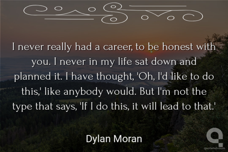I never really had a career, to be honest with you. I never in my life sat down and planned it. I have thought, 'Oh, I'd like to do this,' like anybody would. But I'm not the type that says, 'If I do this, it will lead to that.'