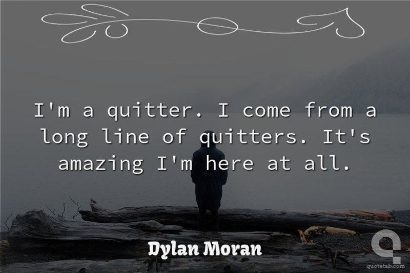 I'm a quitter. I come from a long line of quitters. It's amazing I'm here at all.