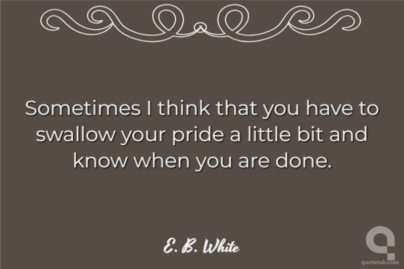 Sometimes I think that you have to swallow your pride a little bit and know when you are done.