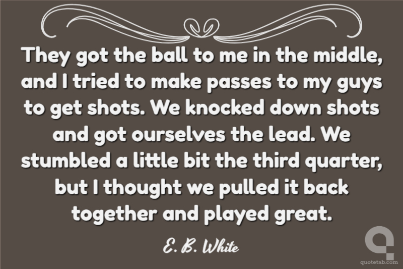 They got the ball to me in the middle, and I tried to make passes to my guys to get shots. We knocked down shots and got ourselves the lead. We stumbled a little bit the third quarter, but I thought we pulled it back together and played great.