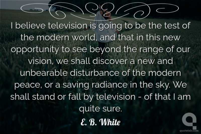 I believe television is going to be the test of the modern world, and that in this new opportunity to see beyond the range of our vision, we shall discover a new and unbearable disturbance of the modern peace, or a saving radiance in the sky. We shall stand or fall by television - of that I am quite sure.