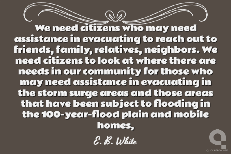 We need citizens who may need assistance in evacuating to reach out to friends, family, relatives, neighbors. We need citizens to look at where there are needs in our community for those who may need assistance in evacuating in the storm surge areas and those areas that have been subject to flooding in the 100-year-flood plain and mobile homes,