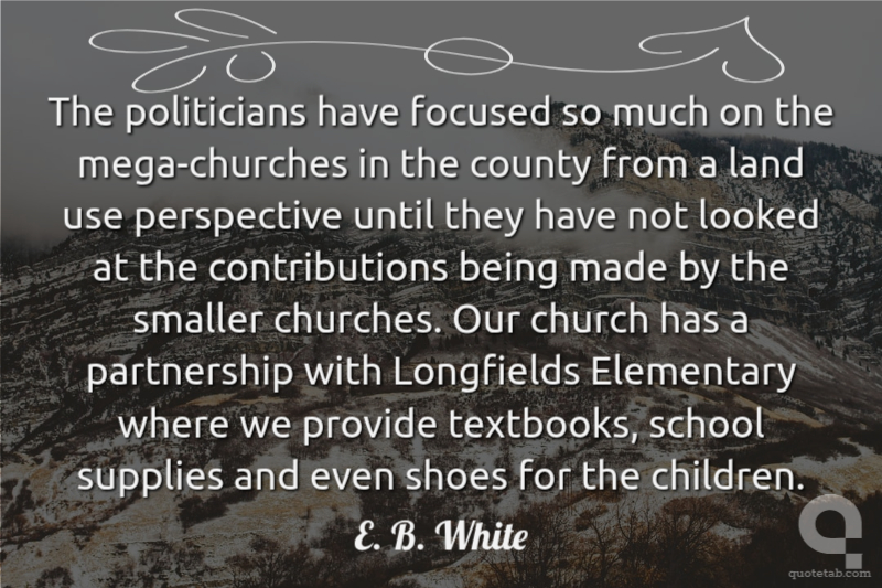 The politicians have focused so much on the mega-churches in the county from a land use perspective until they have not looked at the contributions being made by the smaller churches. Our church has a partnership with Longfields Elementary where we provide textbooks, school supplies and even shoes for the children.