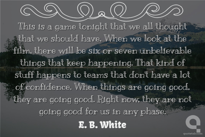This is a game tonight that we all thought that we should have. When we look at the film, there will be six or seven unbelievable things that keep happening. That kind of stuff happens to teams that don't have a lot of confidence. When things are going good, they are going good. Right now, they are not going good for us in any phase.