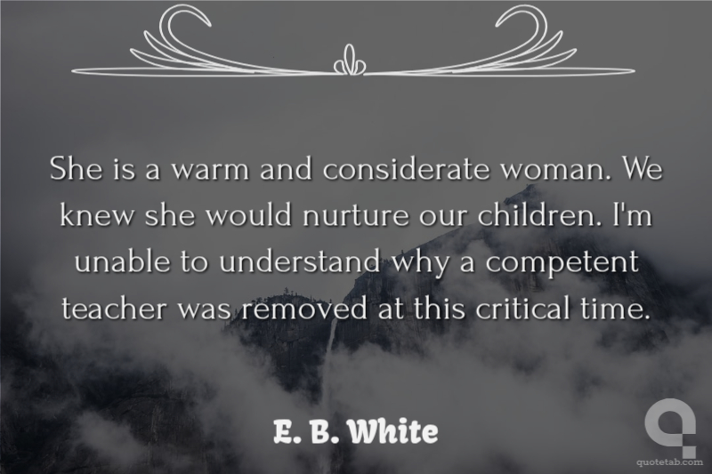 She is a warm and considerate woman. We knew she would nurture our children. I'm unable to understand why a competent teacher was removed at this critical time.