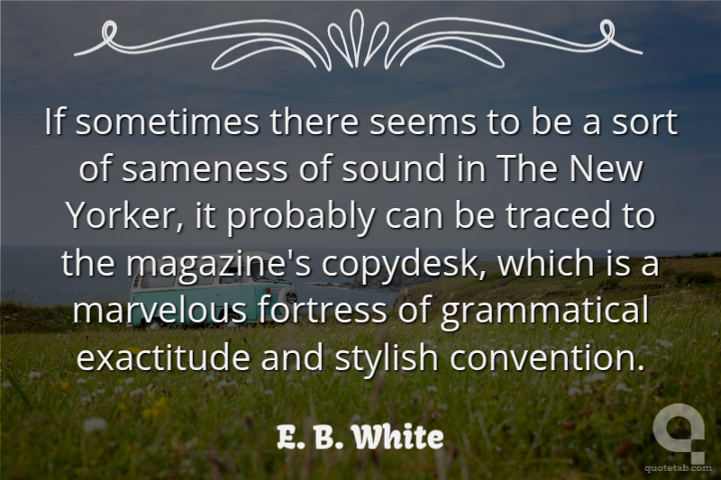 If sometimes there seems to be a sort of sameness of sound in The New Yorker, it probably can be traced to the magazine's copydesk, which is a marvelous fortress of grammatical exactitude and stylish convention.