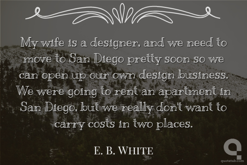My wife is a designer, and we need to move to San Diego pretty soon so we can open up our own design business. We were going to rent an apartment in San Diego, but we really don't want to carry costs in two places.