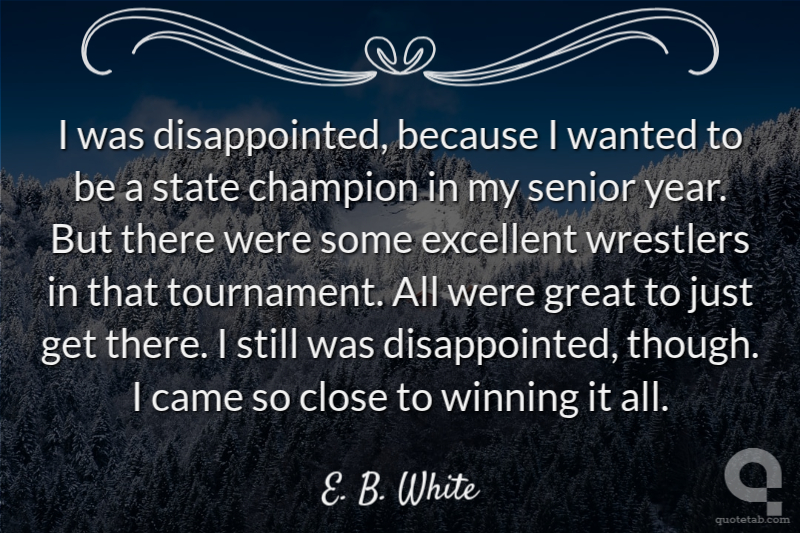 I was disappointed, because I wanted to be a state champion in my senior year. But there were some excellent wrestlers in that tournament. All were great to just get there. I still was disappointed, though. I came so close to winning it all.