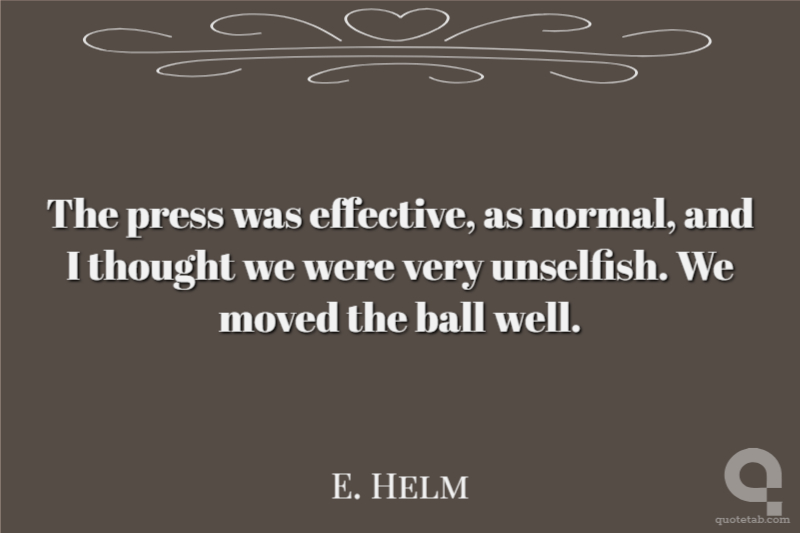 The press was effective, as normal, and I thought we were very unselfish. We moved the ball well.