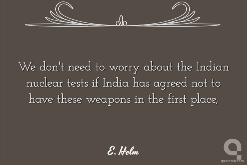 We don't need to worry about the Indian nuclear tests if India has agreed not to have these weapons in the first place,