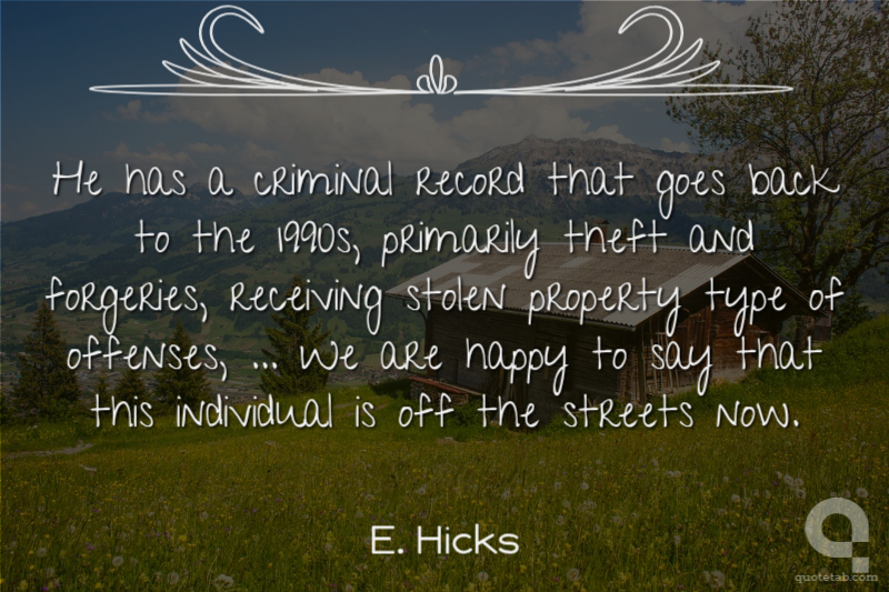 He has a criminal record that goes back to the 1990s, primarily theft and forgeries, receiving stolen property type of offenses, ... We are happy to say that this individual is off the streets now.
